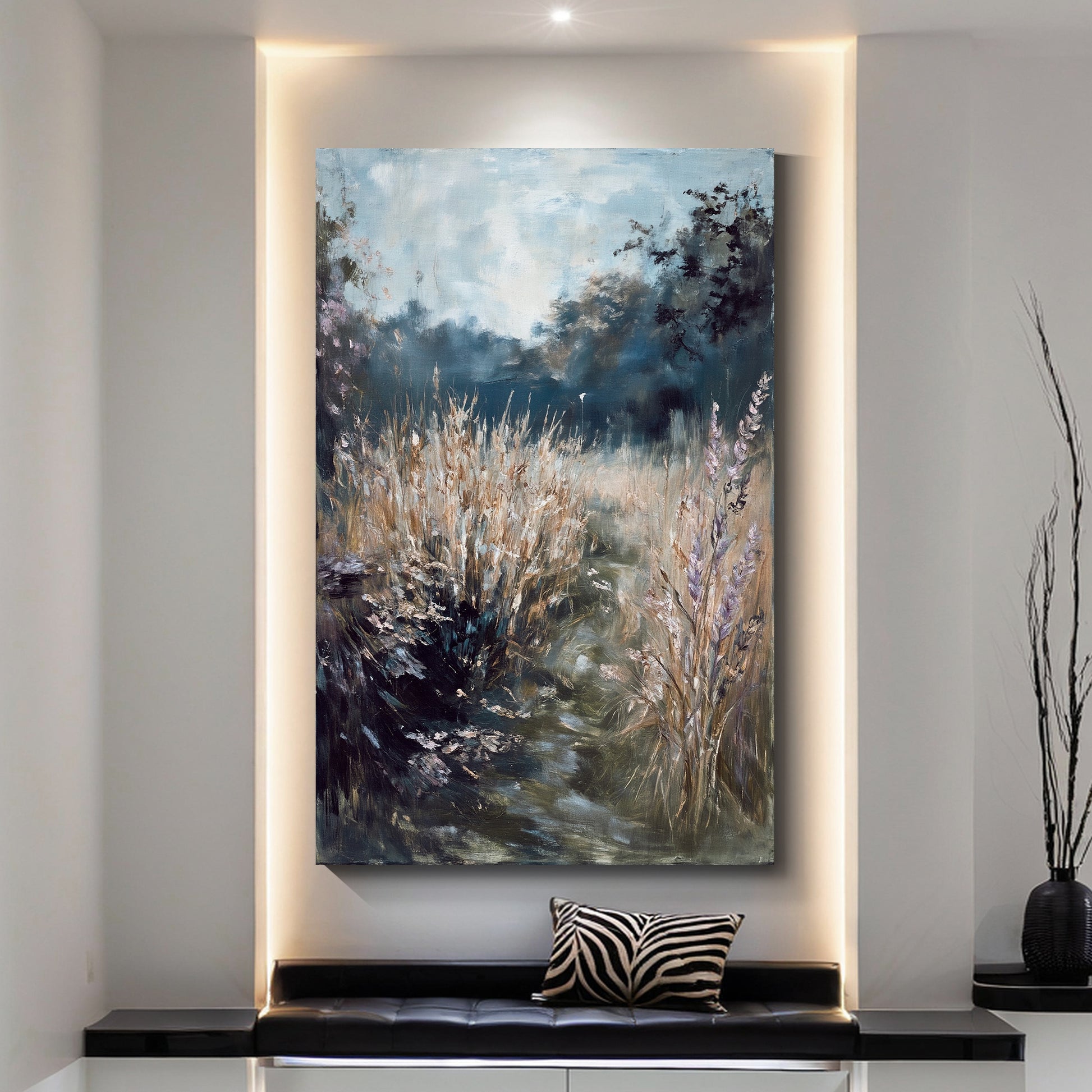 All paintings come with fixed hanging accessories and are ready to hang.