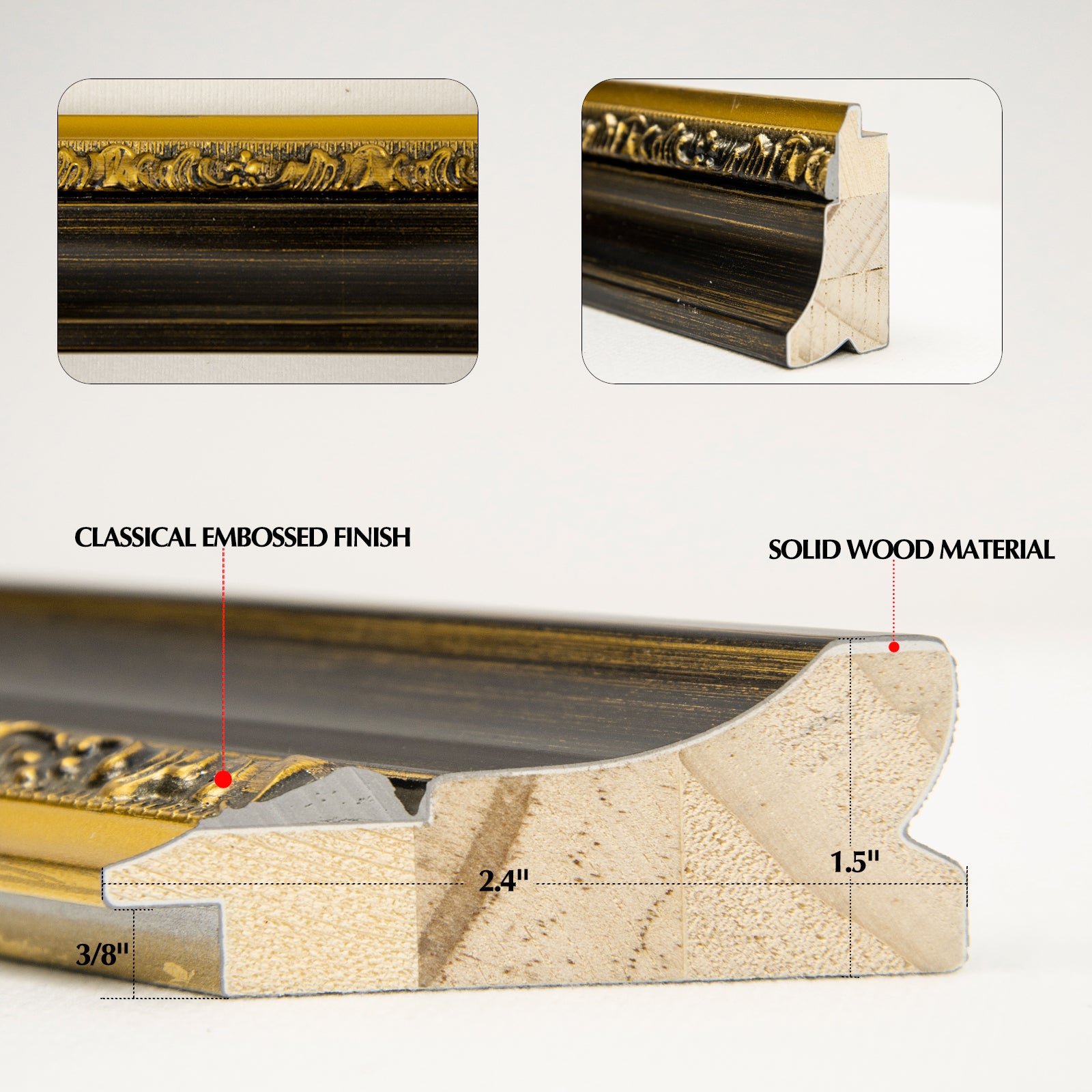 - Vintage Wood Frame: Elevate your artwork with our classic art frame, a perfect blend of classic elegance and modern sophistication. This exquisite frame features a rich gold tone with embossed patterns, creating a stunning visual effect that enhances the beauty of any stretched canvas artwork.