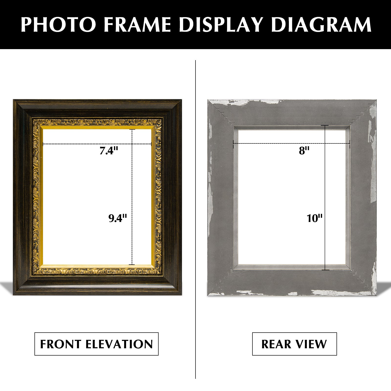 - Choose A Proper Canvas Frame- The listed floater frame size is based on inner dimensions. For example, if your stretched canvas painting is 8”x10”, then please order the 8”x10” frame. Frame wide: 2.4 inches, rabbet deep: 3/8 inches. (Please Note: Empty frame only, no glass cover and backing board)